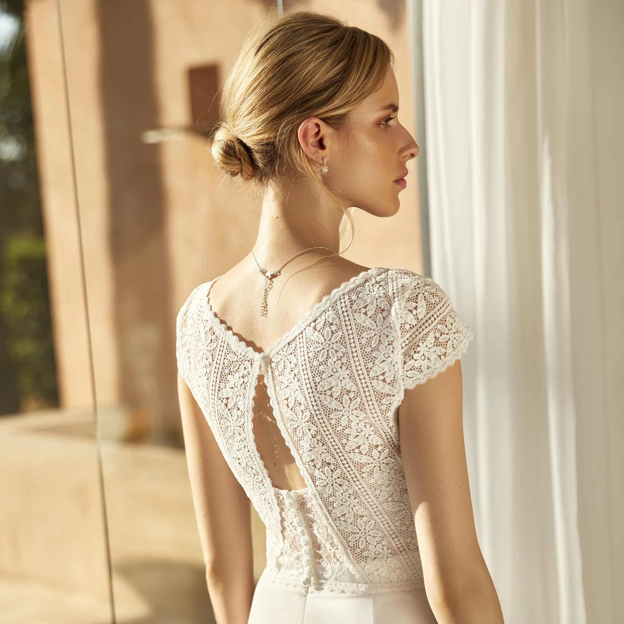 Boléro de mariée en dentelle bohème.