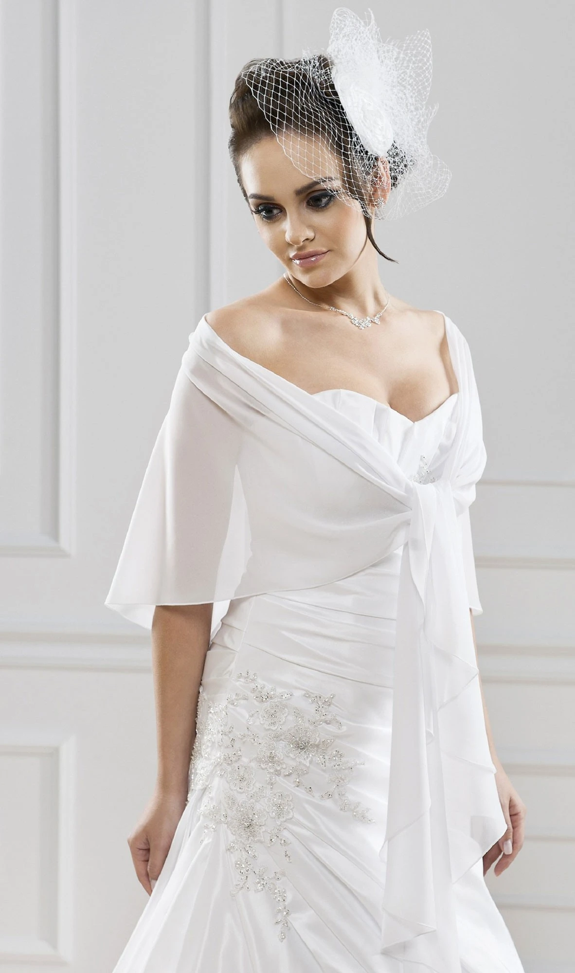 Châle de mariée arrondie en mousseline