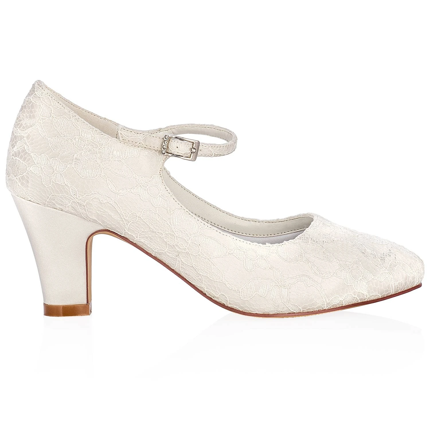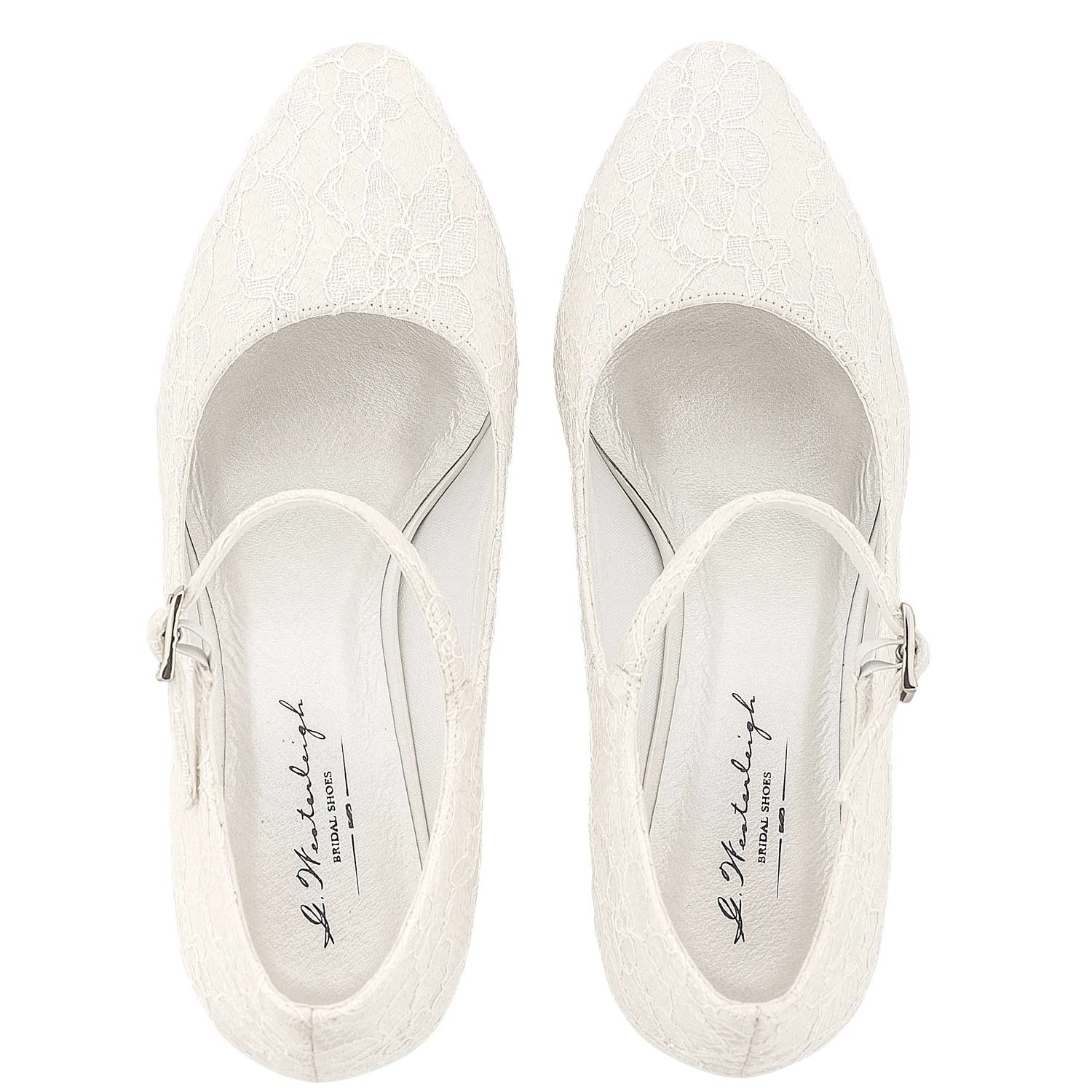 Chaussure de mariée à inspiration vintage, entièrement recouverte de dentelle.