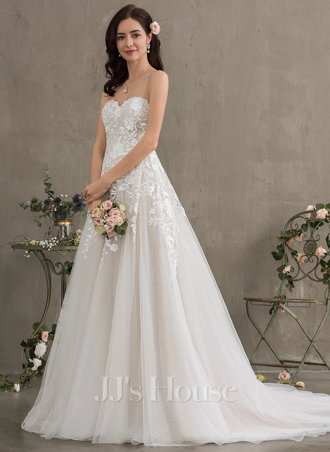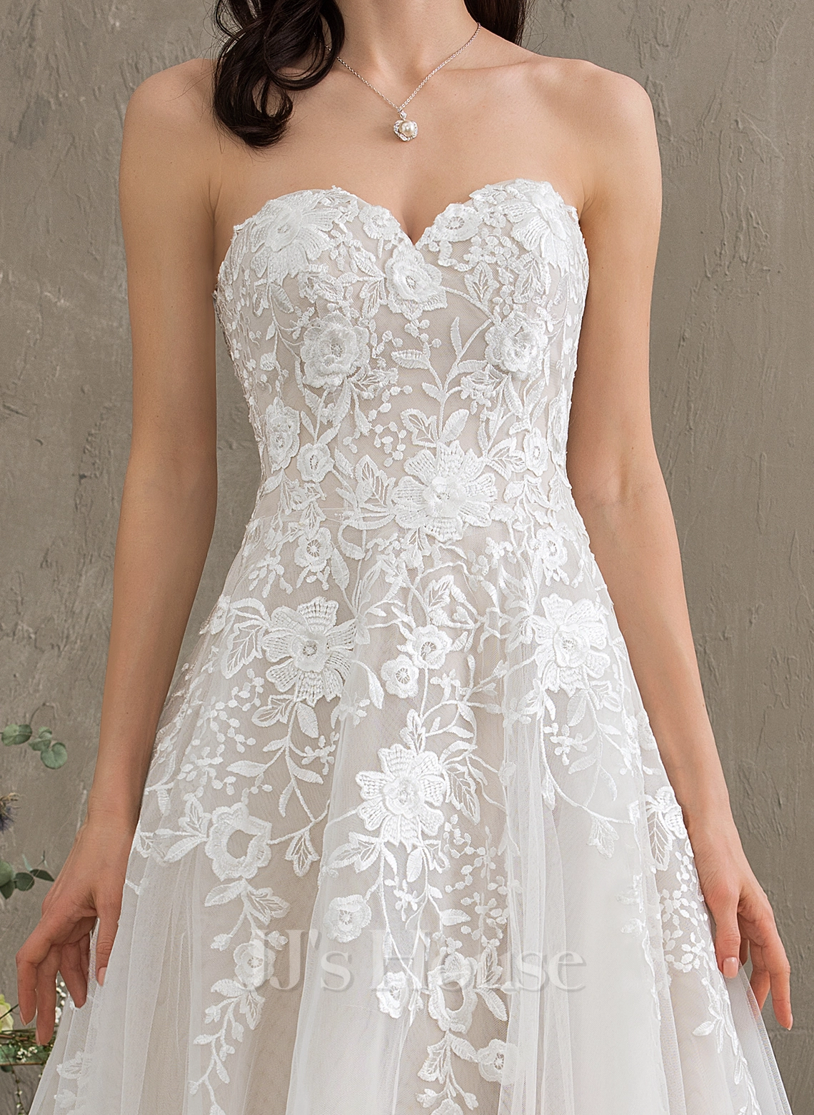 Illuminez votre grand jour avec cette robe de mariée princesse avec traîne ! À décolleté bustier en forme de cœur, elle dénude le dos et les épaules subtilement. Le haut est embelli de dentelle élégante. Sa finition en tulle apporte du volume sans alourdir la silhouette.