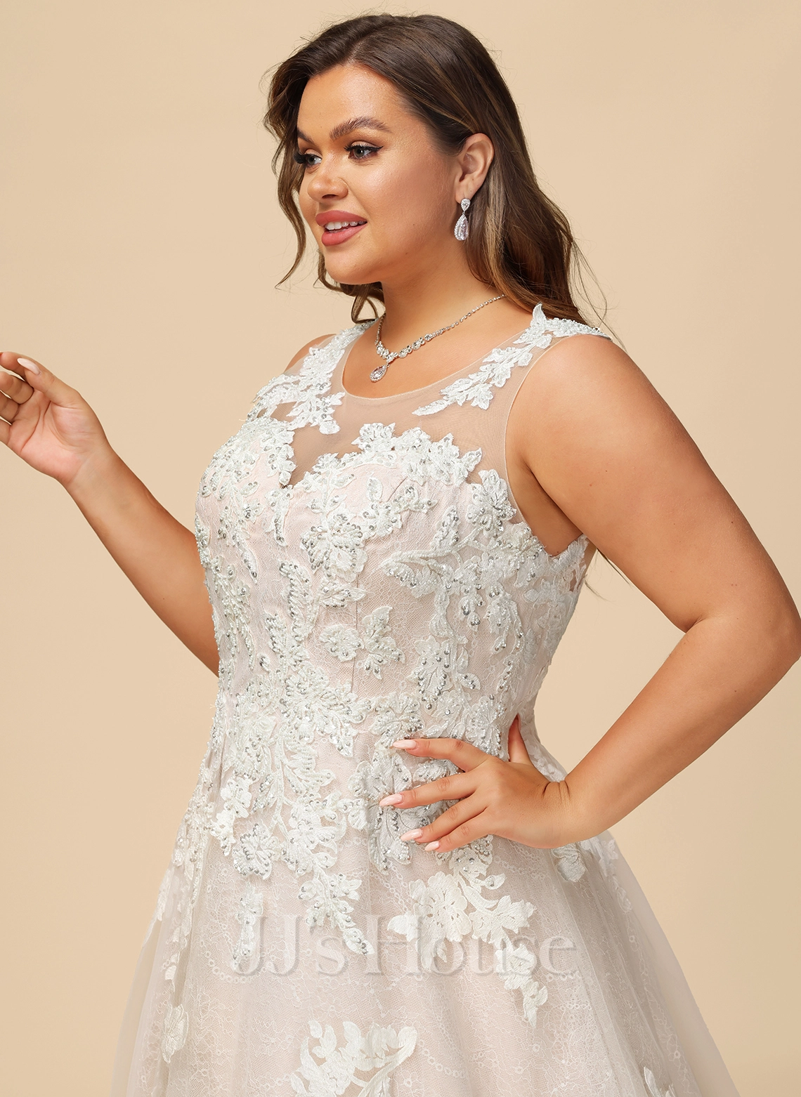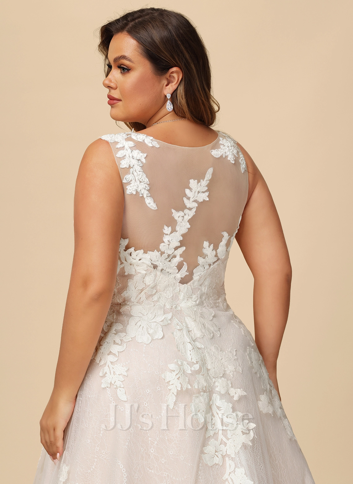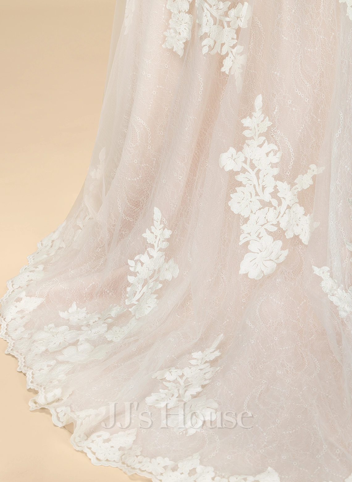 Pour un look glamoureux, on opte pour cette robe de mariée princesse longue. Avec un dos illusion, elle est réalisée en tulle transparent et ornée de motifs floraux en dentelle qui parcourent toute la tenue. La jupe très bouffante apporte de beaux volumes et donne allure à la mariée.