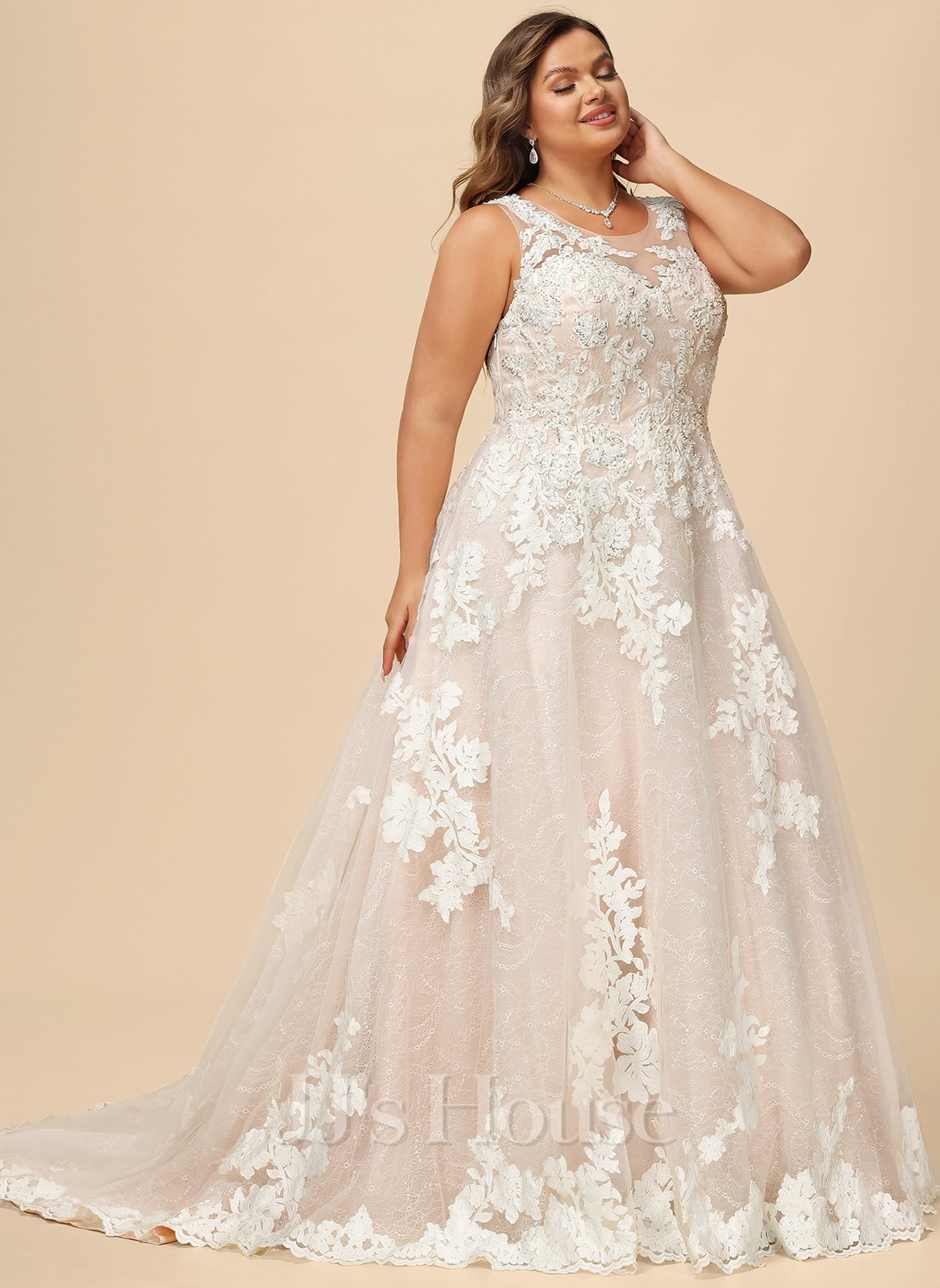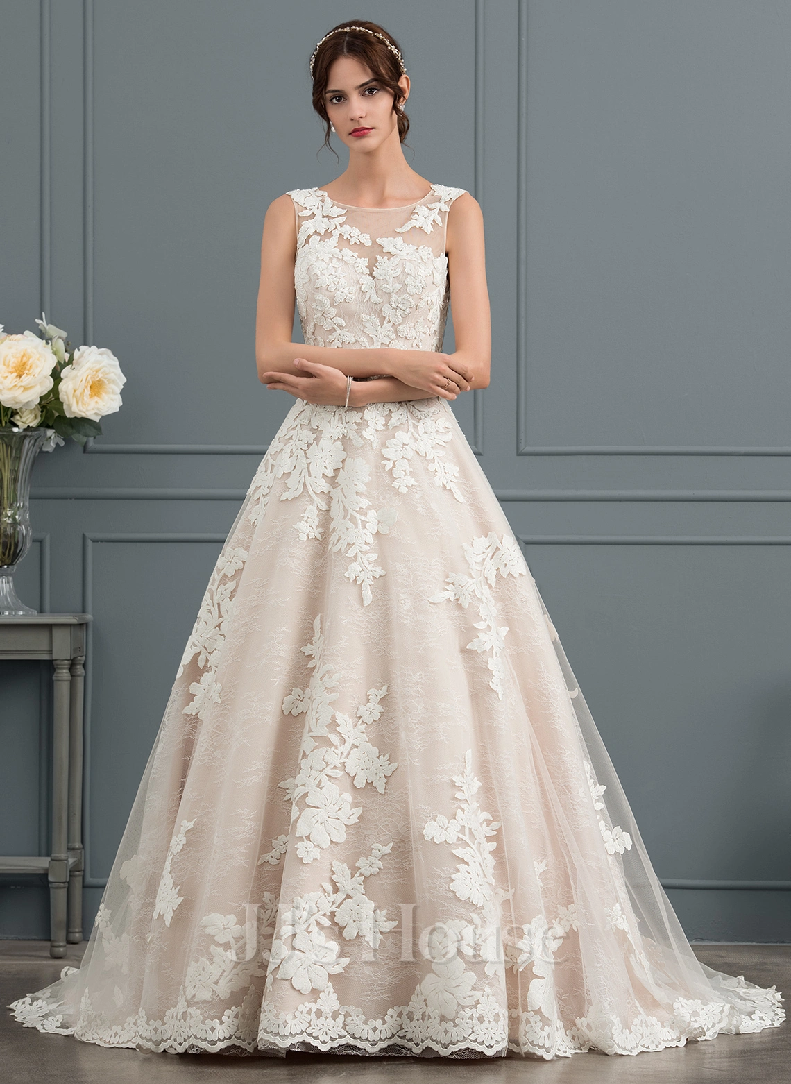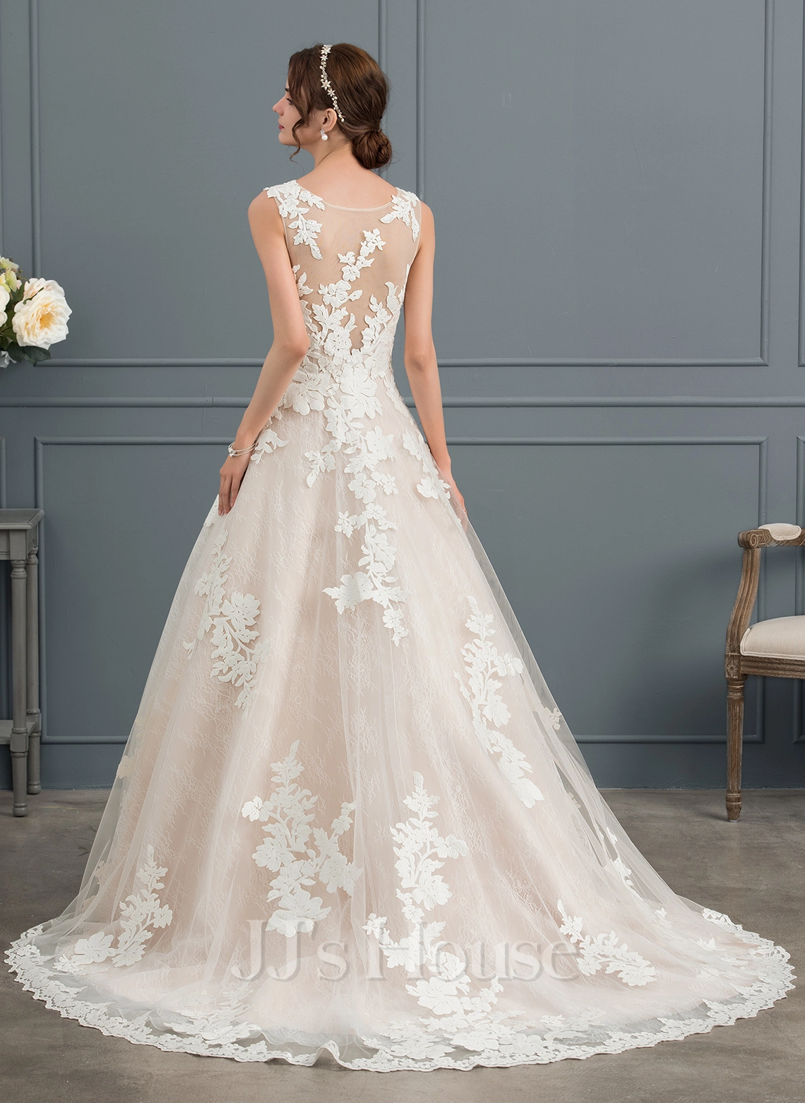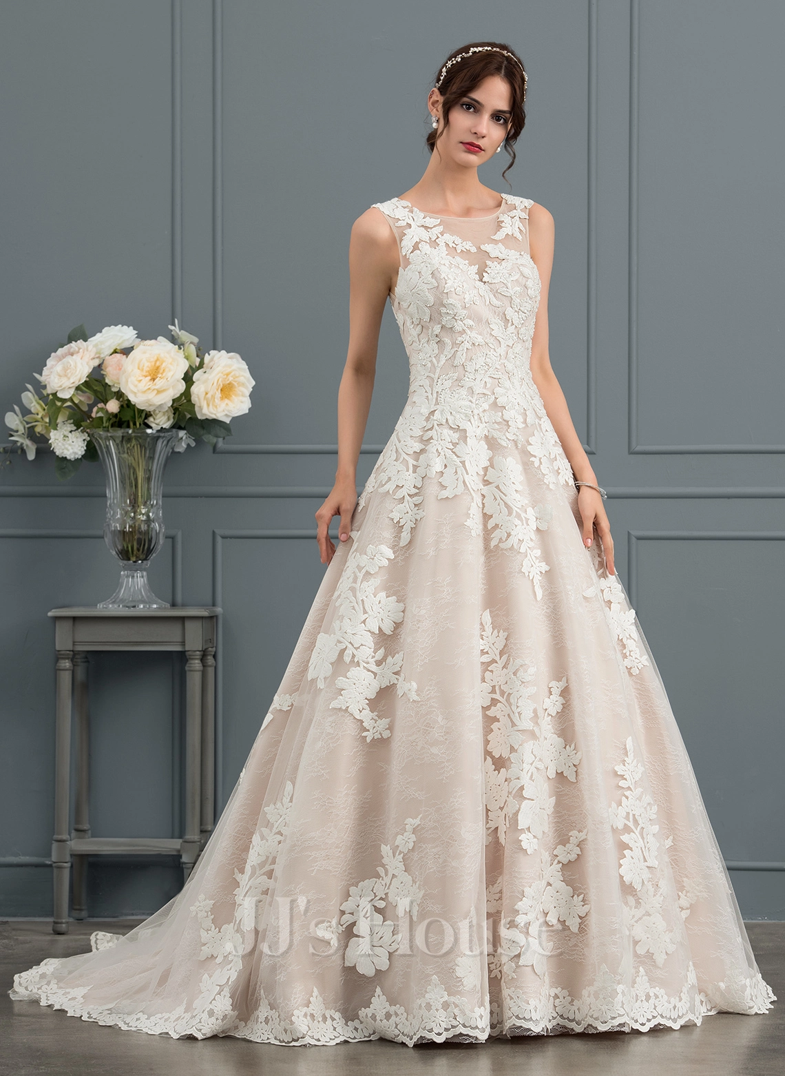 Pour un look glamoureux, on opte pour cette robe de mariée princesse longue. Avec un dos illusion, elle est réalisée en tulle transparent et ornée de motifs floraux en dentelle qui parcourent toute la tenue. La jupe très bouffante apporte de beaux volumes et donne allure à la mariée.