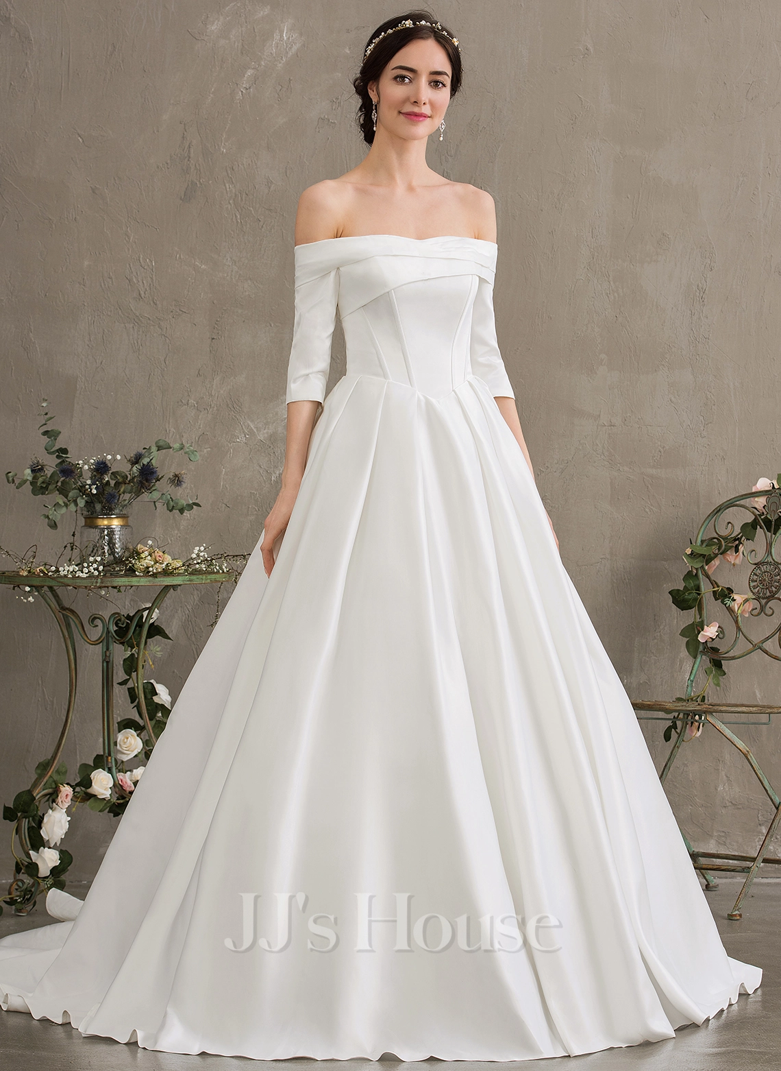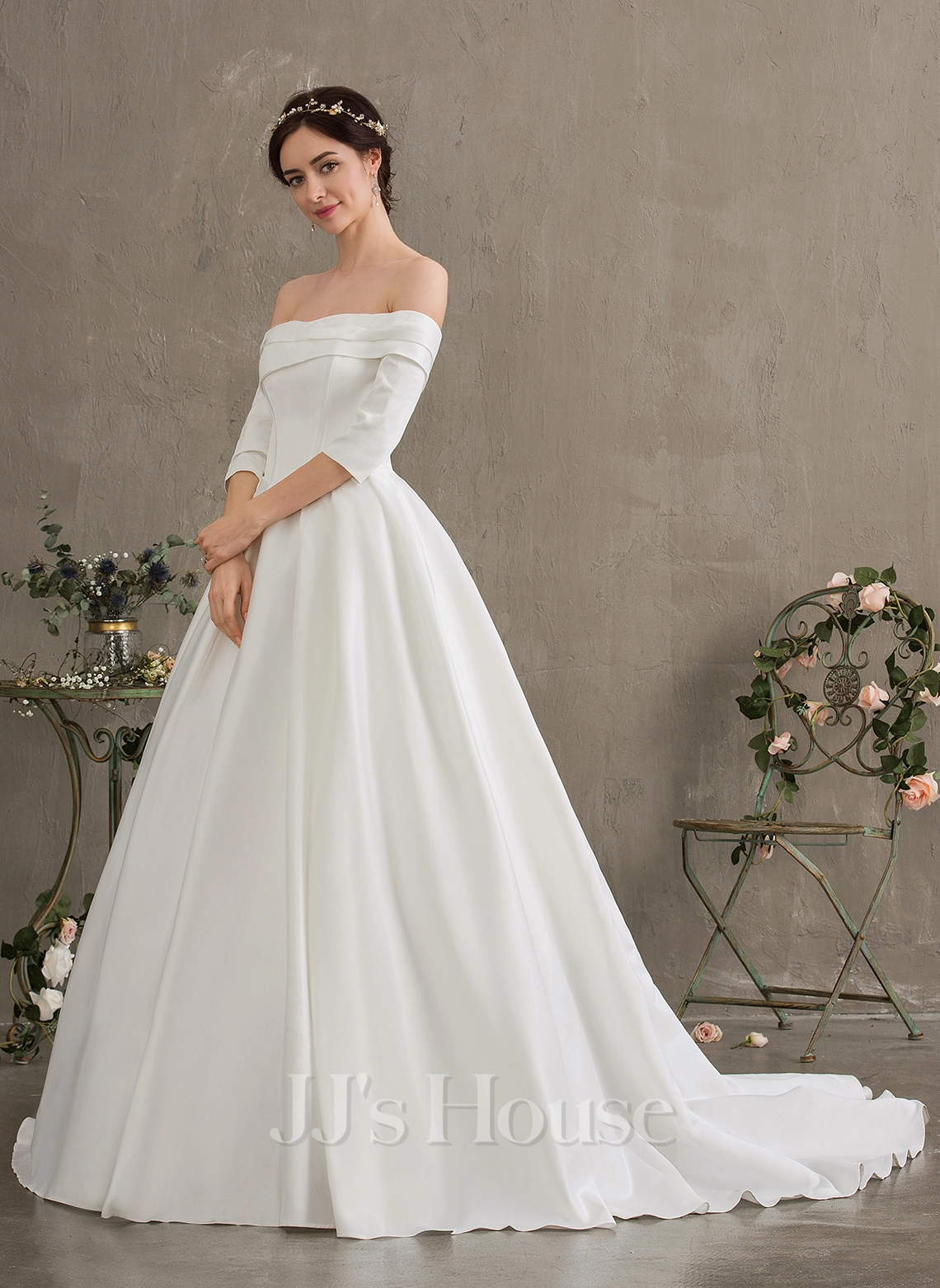 Le style princesse est une tendance indémodable pour les mariées ! Cette robe de mariée simple en satin à épaules dénudées, avec une traîne moyenne, vous apporte de l’élégance. Elle est également plissée sur l’encolure. Avec un laçage au dos, cette robe vous rendra plus attrayante.