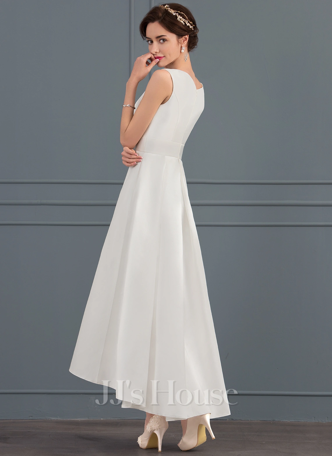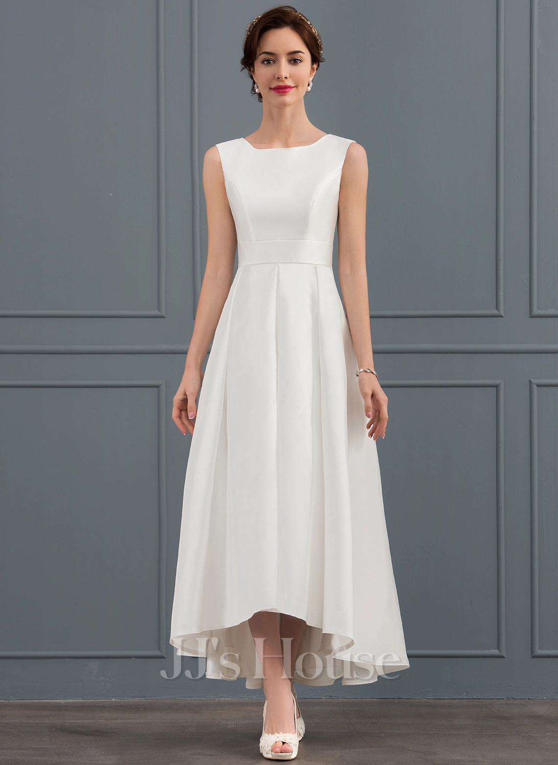 Une robe de mariée très unique et originale cousue avec soin en satin. Épurée et élégante, elle est composée d’un haut ajusté en col carré et d’une jupe asymétrique évasée à partir de la taille. De beaux plissés apportent une touche très chic et stylée.