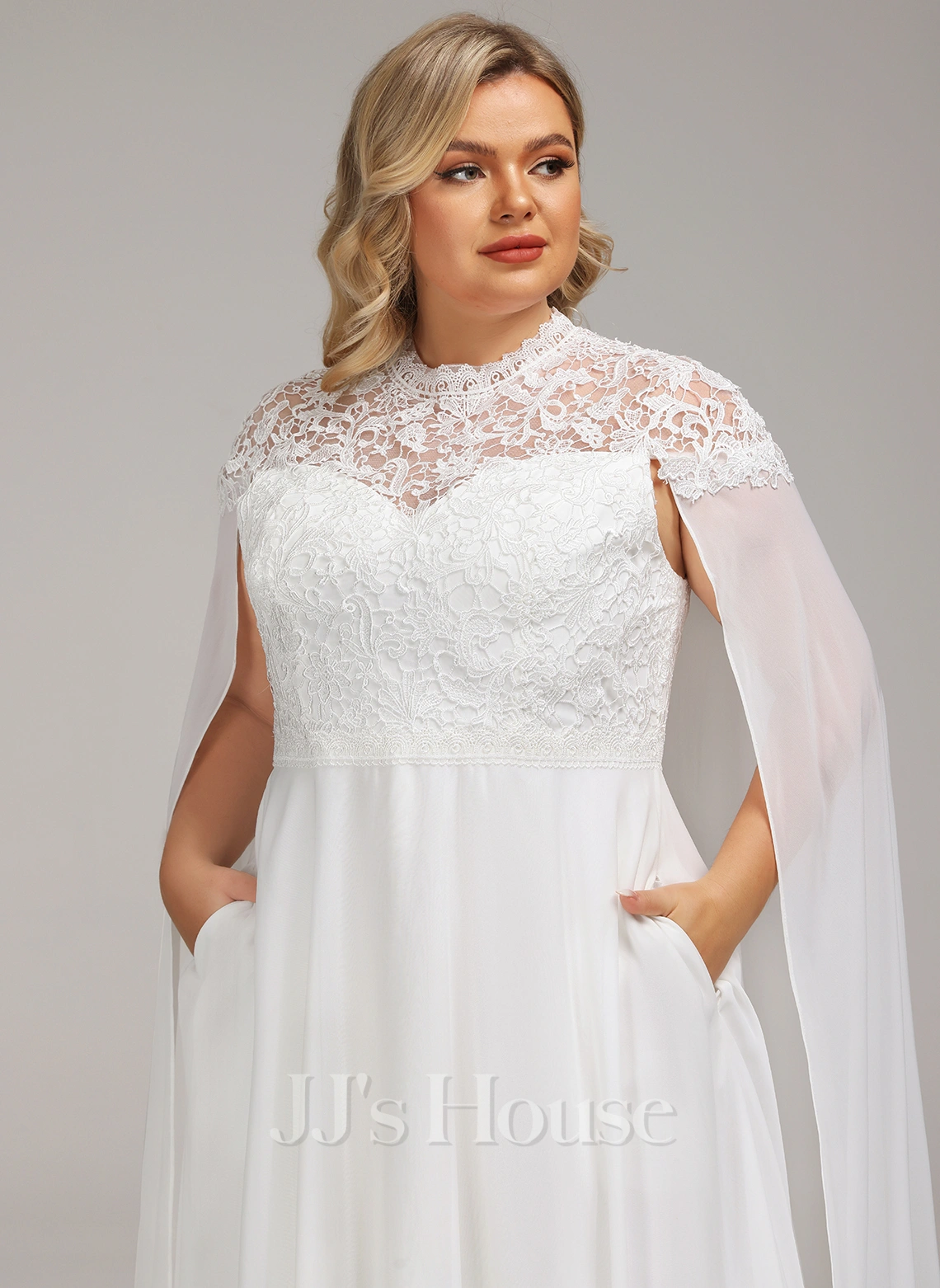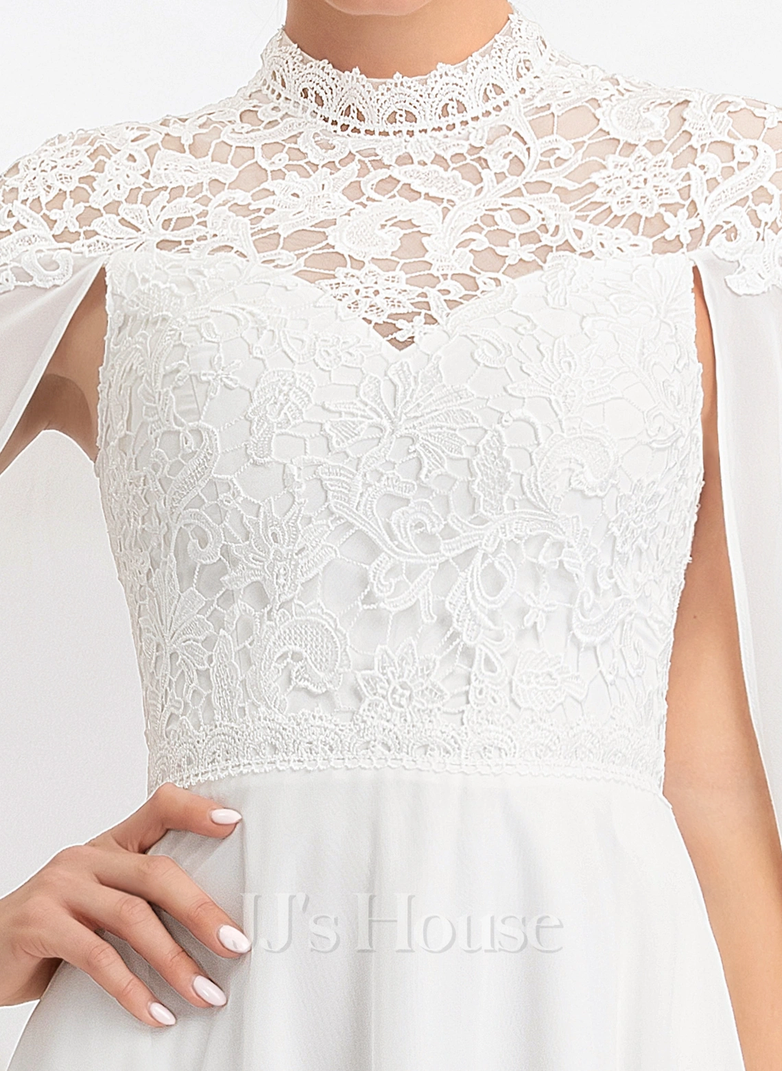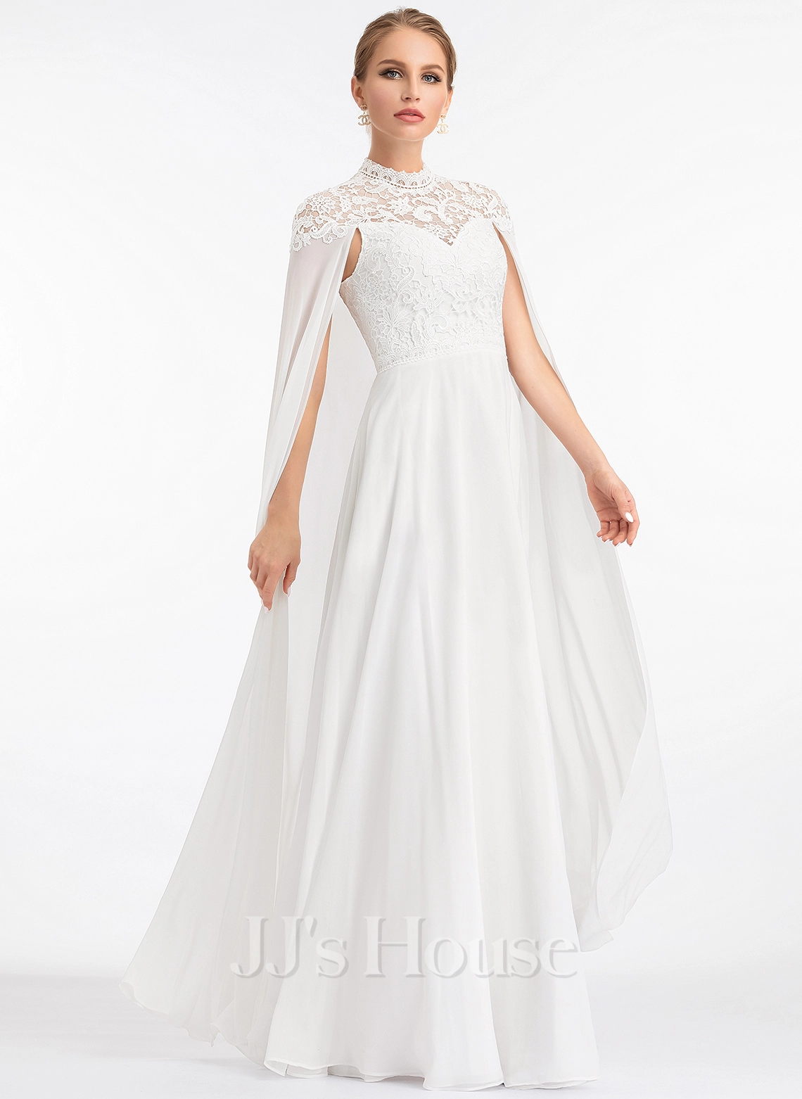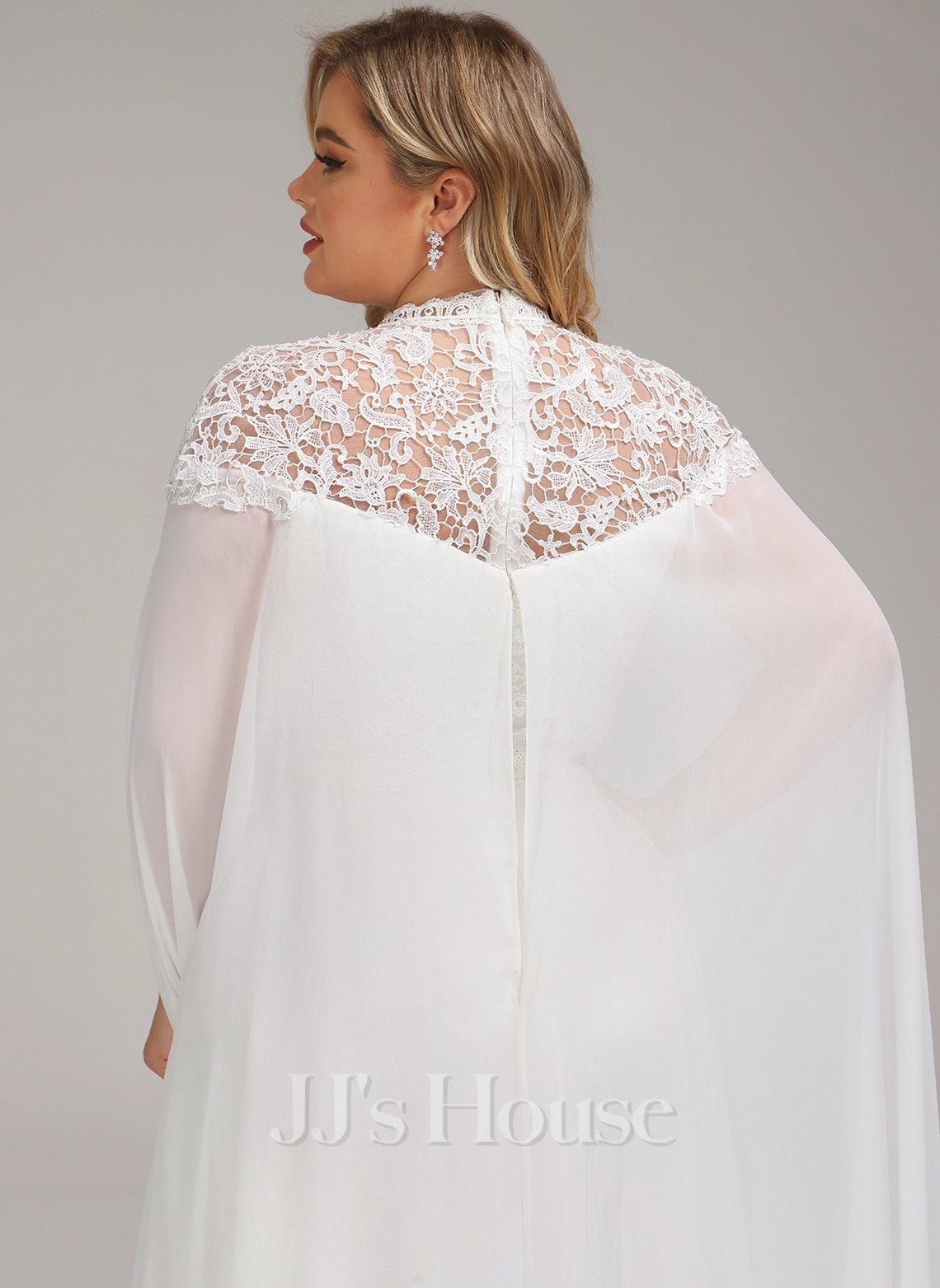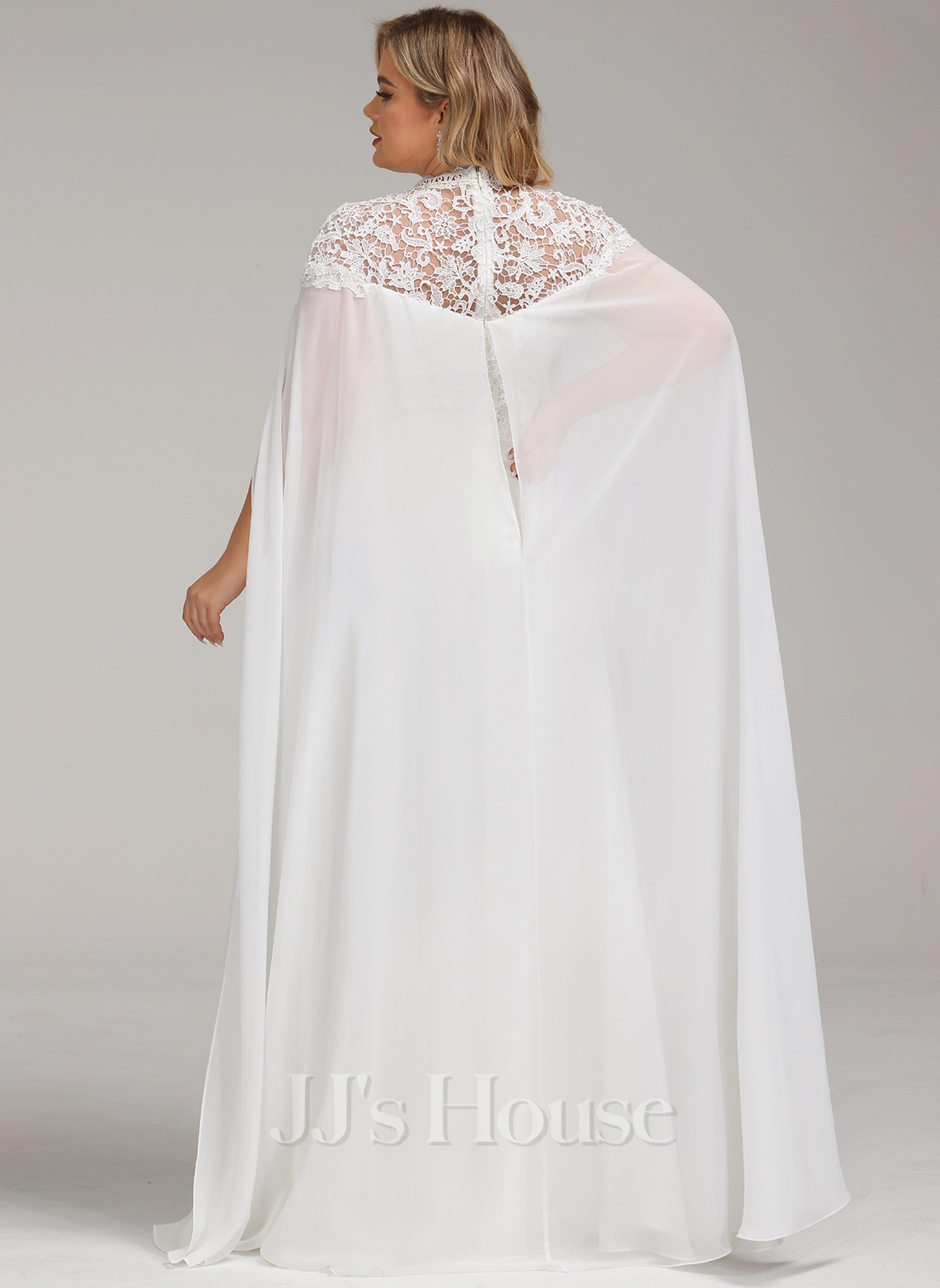 Dans cette robe de mariée évasée en mousseline, vous allez devenir une future mariée noble et marquante grâce à sa cape et sa longueur ras du sol. Son corsage, surtout ses épaules, est recouvert de motifs en dentelle pour ajouter une touche romantique.