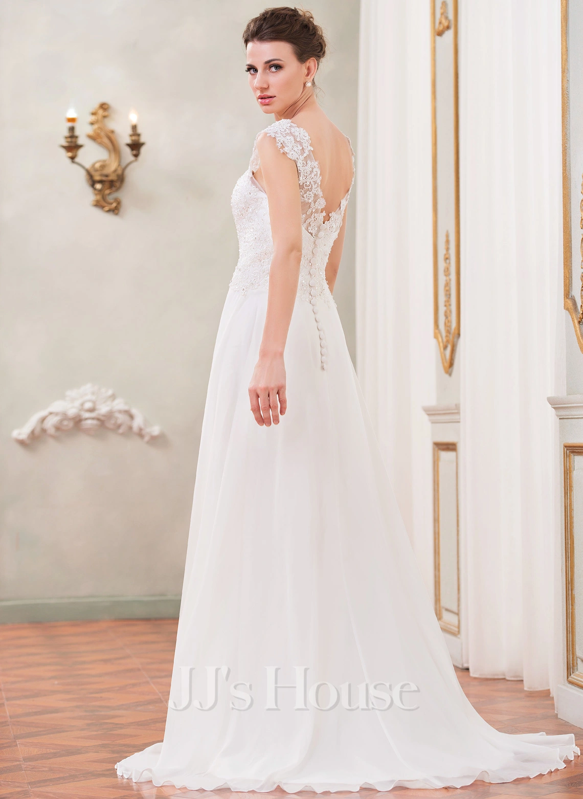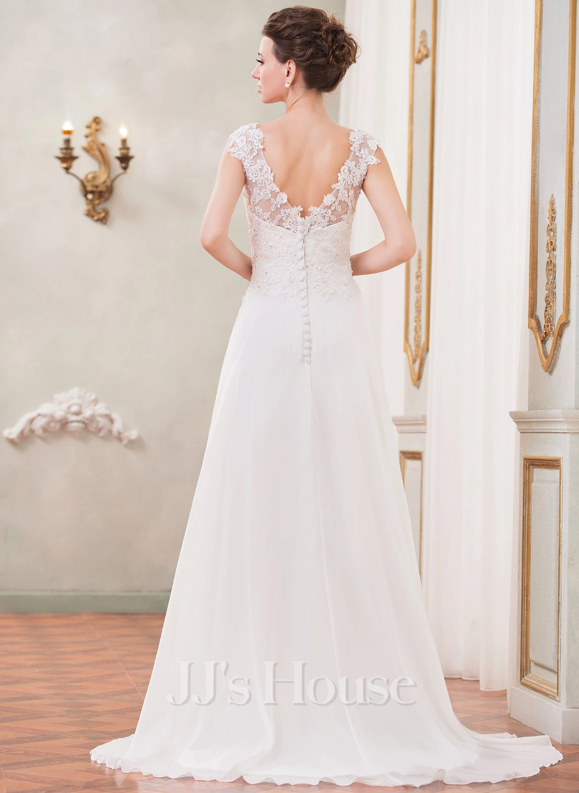 Sentez-vous comme dans un rêve vêtue de cette robe de mariée princesse. Avec un décolleté audacieux dans le dos, le corsage est agrémenté de dentelle perlée et pailletée. Sa jupe épurée et douce, réalisée en mousseline souple, s’évase à partir de la taille et se prolonge par une traîne.