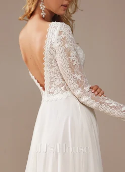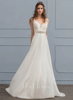 JJsHouse Robe Trapèze Dos Nu Balayage/pinceau Train Mousseline Dentelle Robe De Mariée