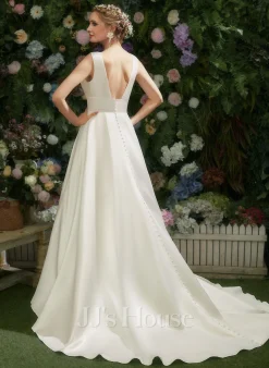 JJsHouse Robe Trapèze Scoop Traîne Moyenne Satiné Robe De Mariée