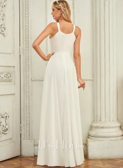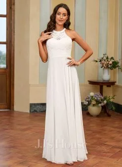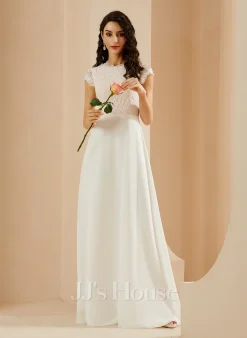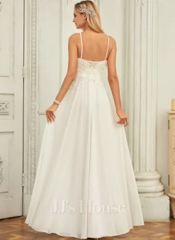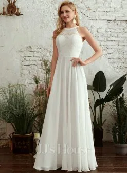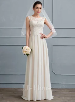 JJsHouse Scoop Longueur Ras Du Sol Mousseline Dentelle Robe De Mariée Avec Paillettes