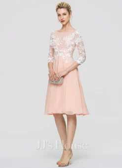JJsHouse Robe Trapèze Scoop Longueur Genou Mousseline Dentelle Robe De Mariée Avec Paillettes