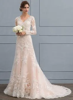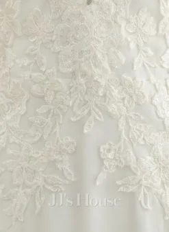 JJsHouse Forme Sirène/trompette Col V Traîne Mi-longue Dentelle Tulle Robe De Mariée Avec Brodé