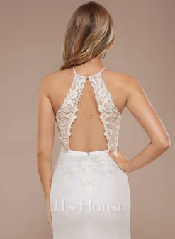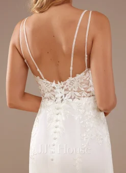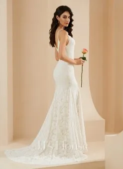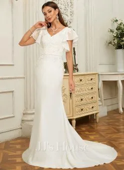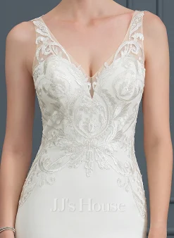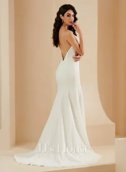 JJsHouse Forme Sirène/trompette Droit Balayage/pinceau Train Crêpe Stretch Robe De Mariée