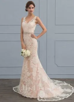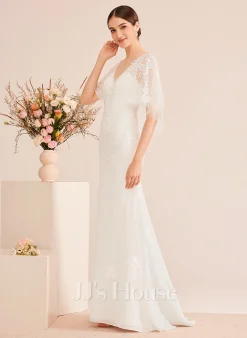 JJsHouse Forme Sirène/trompette Col V Traîne Moyenne Mousseline Dentelle Robe De Mariée