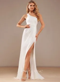 JJsHouse Forme Sirène/trompette épaule Dénudée Asymétrique Robe De Mariée Avec Robe à Volants
