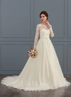 JJsHouse Robe Marquise/princesse Illusion Balayage/pinceau Train Dentelle Organza Tulle Robe De Mariée Avec Brodé Paillettes