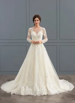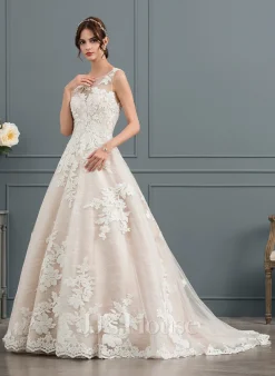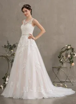 JJsHouse Robe Marquise/princesse Scoop Balayage/pinceau Train Dentelle Tulle Robe De Mariée