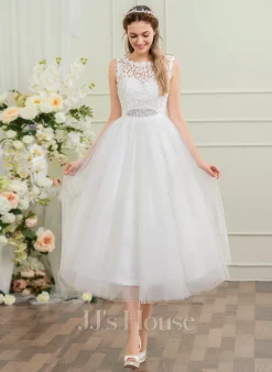 JJsHouse Robe Marquise/princesse Longueur Mollet Dentelle Tulle Robe De Mariée Avec Brodé Paillettes