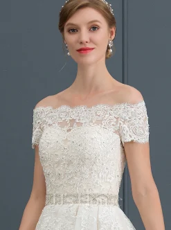JJsHouse Robe Marquise/princesse épaule Dénudée Traîne Mi-longue Dentelle Tulle Robe De Mariée