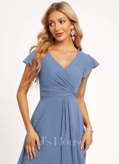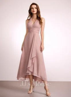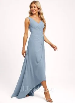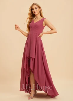 Jjshouse.fr Robe Trapèze Col V Asymétrique Mousseline Robe De Demoiselle D’honneur Avec Plissé