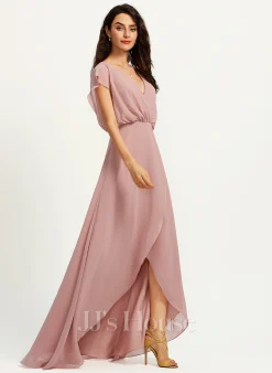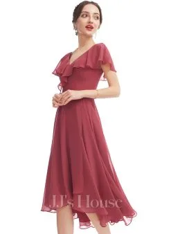 Jjshouse.fr Robe Trapèze Col V Asymétrique Mousseline Robe De Demoiselle D’honneur