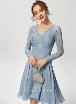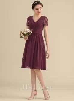 Jjshouse.fr Robe Trapèze Col V Longueur Genou Mousseline Mousseline Robe De Demoiselle D’honneur