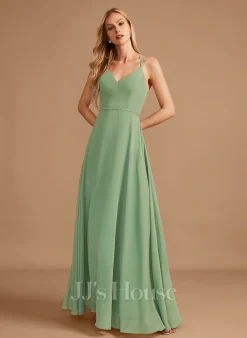 Jjshouse.fr Robe Trapèze Col V Longueur Ras Du Sol Mousseline Robe De Demoiselle D’honneur