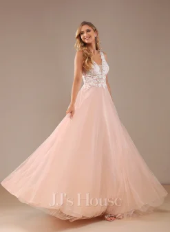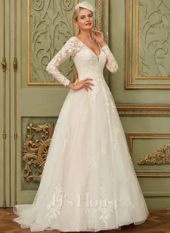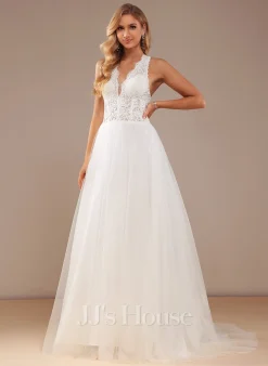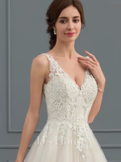JJsHouse Robe Marquise/princesse Col V Traîne Moyenne Dentelle Tulle Robe De Mariée Avec Brodé