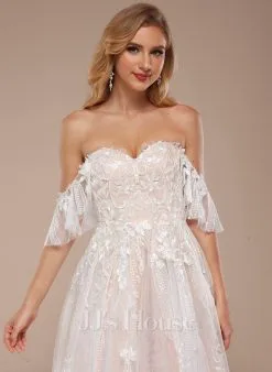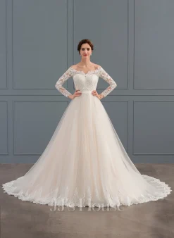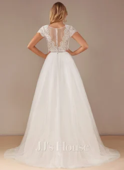 JJsHouse Robe Marquise/princesse épaule Dénudée Traîne Mi-longue Dentelle Tulle Robe De Mariée