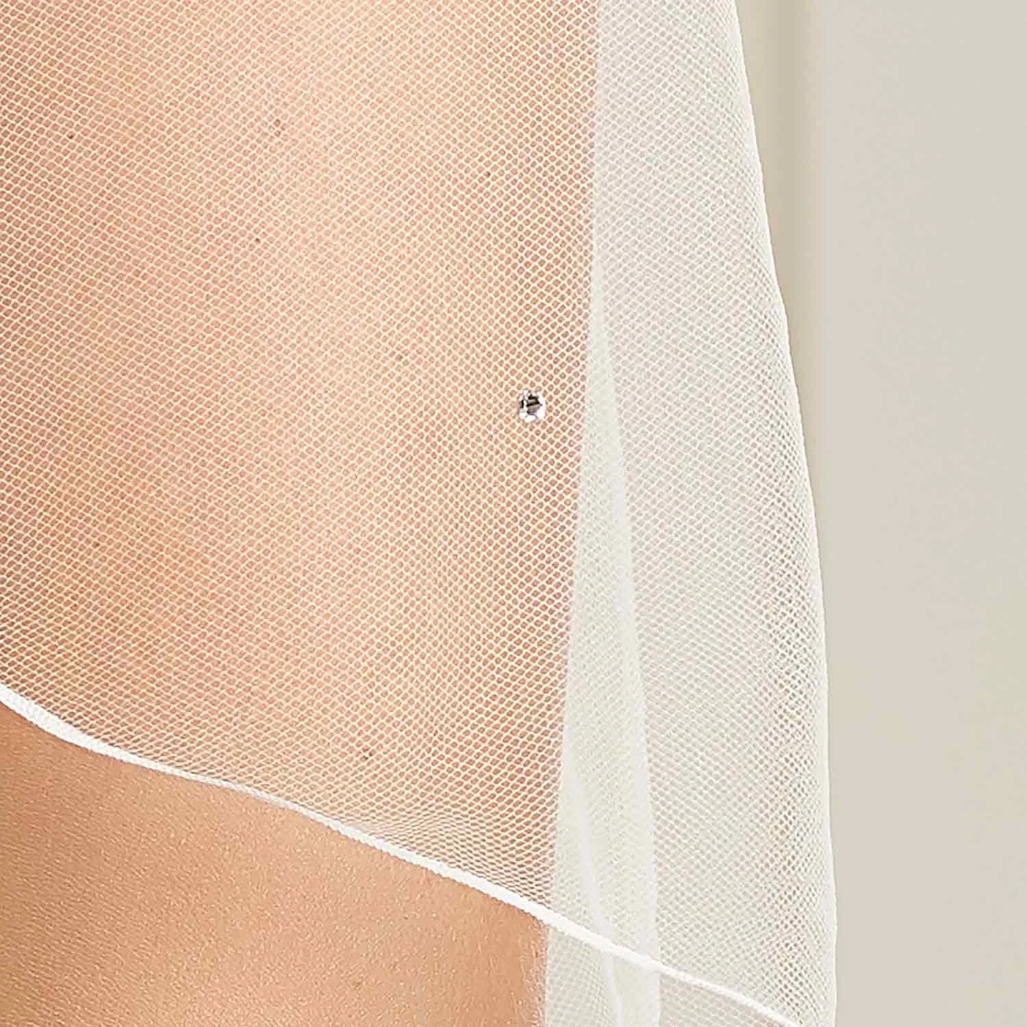 Le voile est proposé avec une bordure festonnée avec 30 strass Swarovski sont miniutieusement parsemés sur le voile.