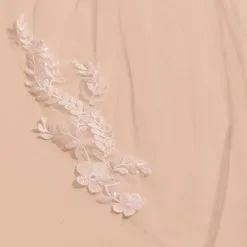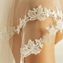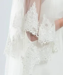 Voile de mariage très long habillé d’une magnifique dentelle française.