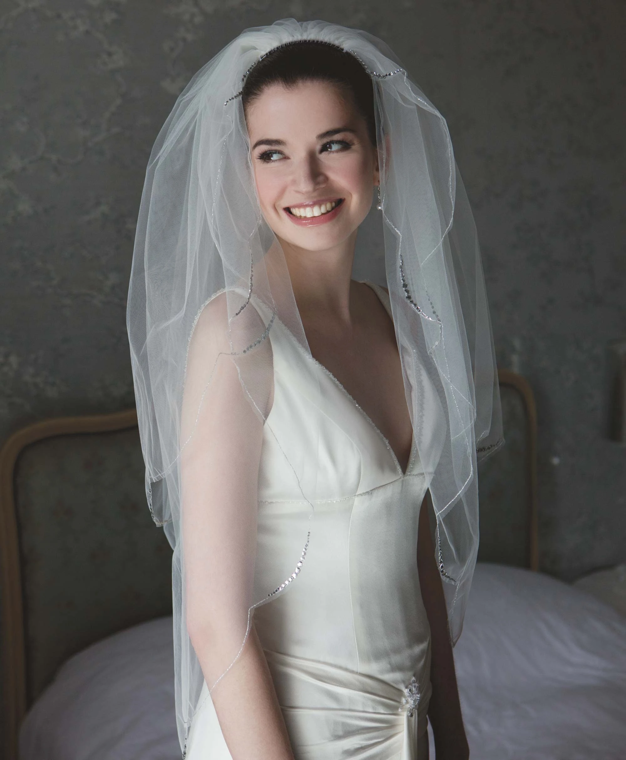 Les bords du voile sont terminés pas une broderie argentée.