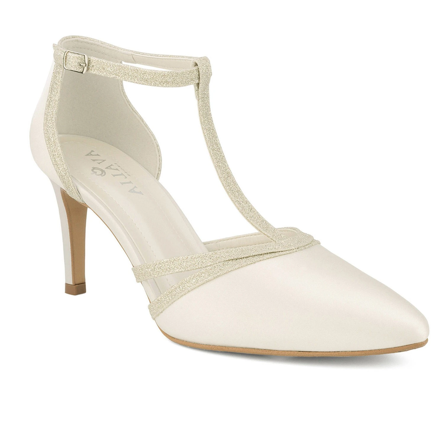 Chaussures de mariage en satin ivoire à bout pointu et talon haut de 8,5 cm.
